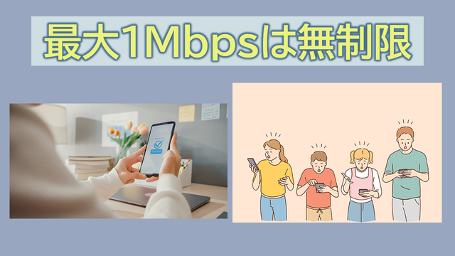 速度制限時は最大1Mbpsで無制限となっており使い放題です。1Mbpsより速度が低下することはありません。