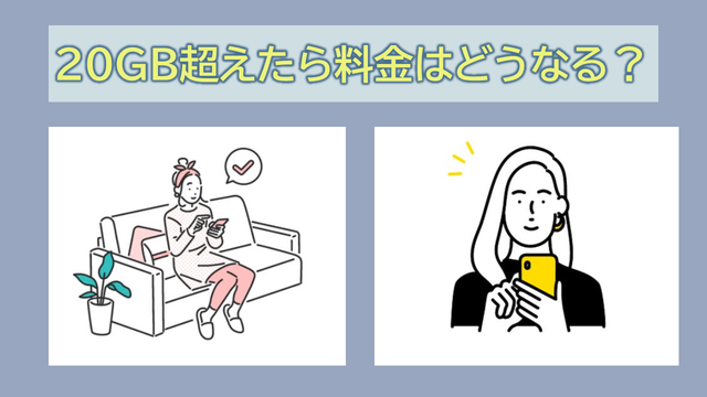 20GBを超えても料金が上乗せされることはありません。また、速度制限時に1Mbpsで、どれだけデータ容量を使っても料金が上乗せされることはありません。