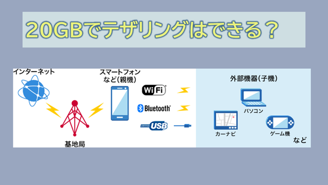ahamoでは基本データ容量の20GBまでテザリングが使えます。20GB超えた場合は最大1Mbpsの無制限でテザリングが使えます。