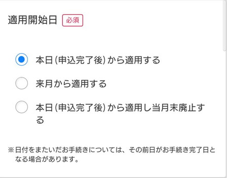 大盛りオプションは月途中での即時適用および翌月適用が選択できます。
