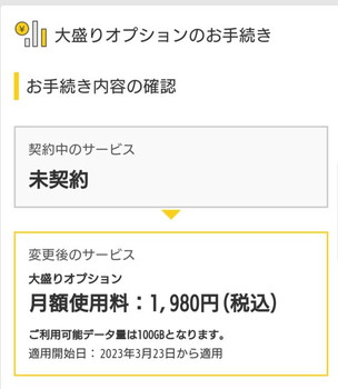 | 大盛りオプション | 80GB:月額1,980円 基本料金と合わせて 100GBで月額4,950円 |