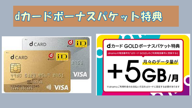 | dカード GOLD | dカード GOLD または dカード | 25GB (dカードボーナスパケット特典により+5GB) |