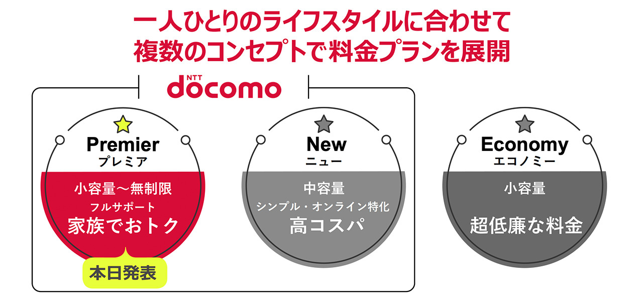 ahamoは「ニュー」向けのプランとなり、そのほか低廉かつ低料金の「エコノミー」プランをMVNOと協業して提供する予定です。