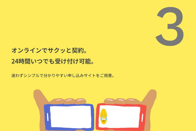 - 3番の「オンラインでサクッと契約。」の箇所までスクロール