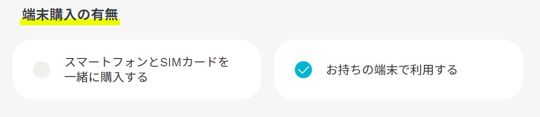 この場合は、スマホセットを購入するか、SIMフリー機種を購入して用意することになります。