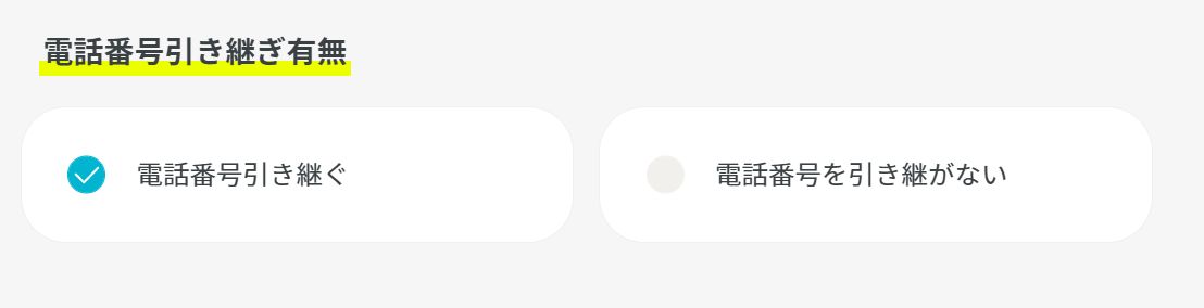- 電話番号引き継ぎ有無「電話番号引き継ぐ」