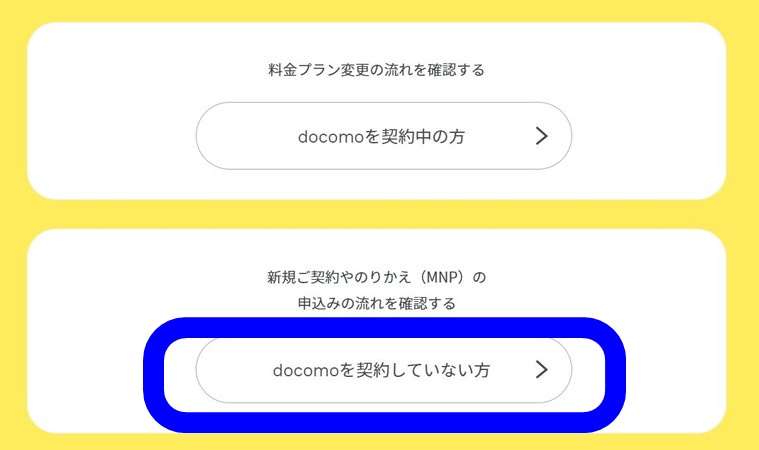 SIMのみ契約は、既存プランにおいてもドコモショップに行かないと契約できませんでした。
