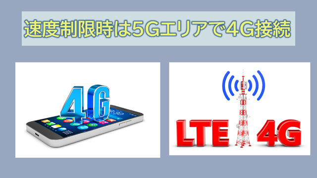 ahamoの速度制限時は5Gエリア内でも常時4G接続となることがあります。